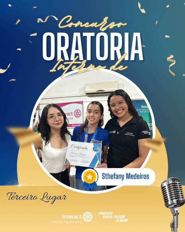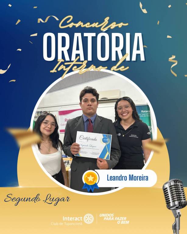 No dia 23/10, realizamos nosso concurso interno de oratória e nossa 12ª Reunião Ordinária, uma oportunidade incrível para desenvolver a comunicação, a autoconfiança e o poder da palavra. 💬  Parabenizamos todos os participantes pelo empenho e coragem, e em especial nossos vencedores: 🥇 Isadora Fontoura 🥈 Leandro Moreira 🥉 Sthefany Medeiros  Foi uma noite de muito aprendizado, emoção e companheirismo!   Com carinho, Interact Club de Tupanciretã! 💙  《》《》《》《》《》《》《》《》《》《》《》  #paratodosverem : Este post possui legenda alternativa para promover a inclusão social, para ter acesso basta ativar as funções de acessibilidade em seu celular.  #distrito4660 #interactbrasil #unidosparafazerobem